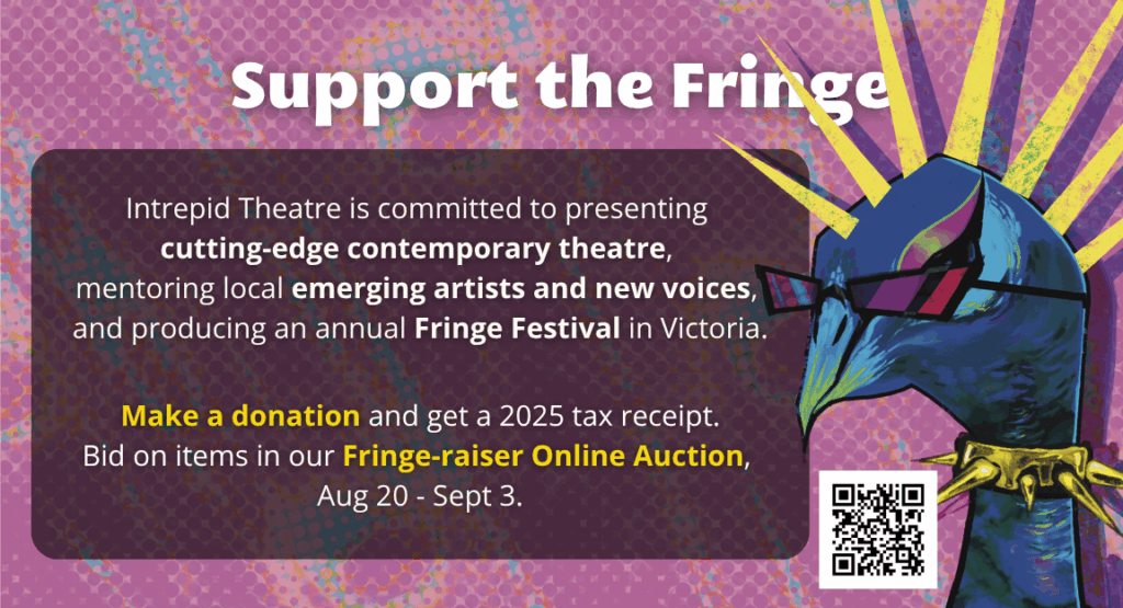 If you have any issues booking your tickets and would like support, please contact Max via email at volunteer@intrepidtheatre.com or via phone 250-383-2663 during business hours, Mon – Fri.